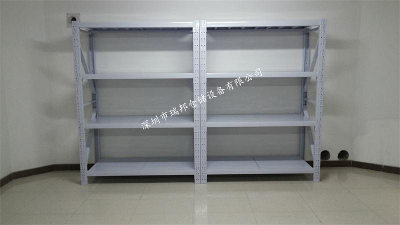 中型貨架是由立柱,橫梁,層板組裝而成的,獨立的一組有兩片立柱,這樣的貨架叫做主架。